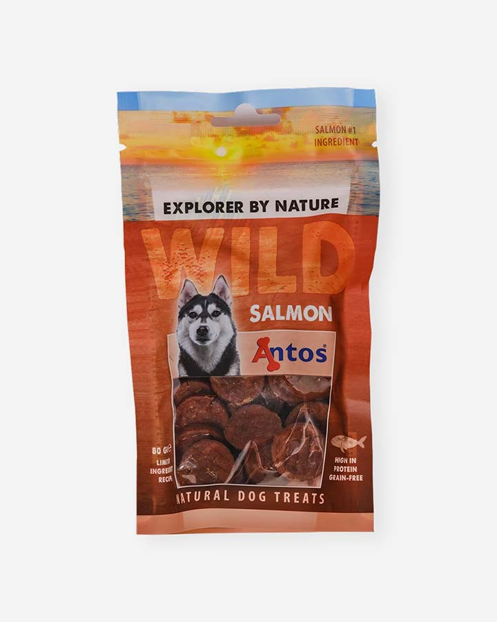 Wild Snacks Laks har et kød indhold på hele 96 % og er nænsomt lufttørrede for at bevare den naturlige smag og kvalitet.