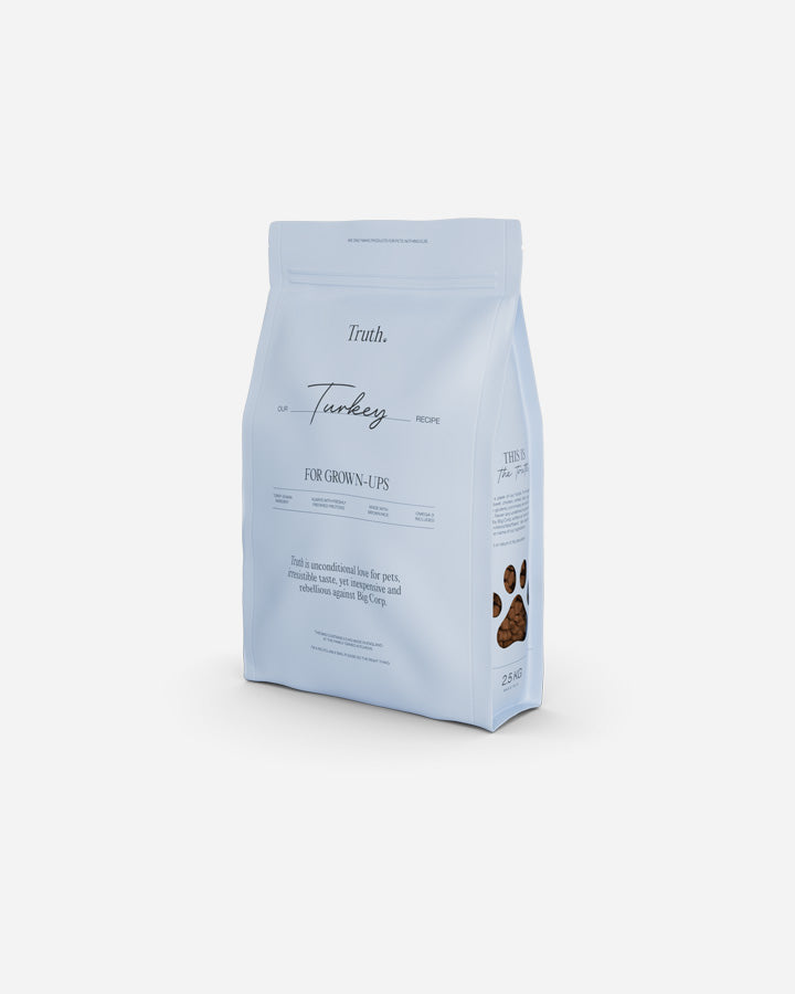 Er din hund voksen og elsker masser af smag? Truth Turkey er et af Truths fem Single Source-tørfoderprodukter med kalkun som eneste animalske proteinkilde for lettere fordøjelse og intens smag. Dette fuldfoder giver masser af næring til at holde din hund glad, sund og mæt hele dagen – perfekt til både stor og lille appetit!